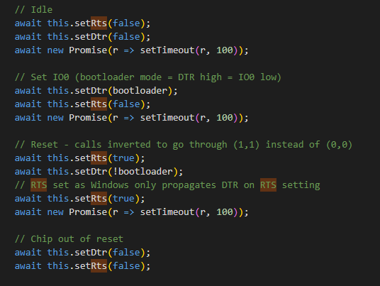 So I forced Github Copilot into writing me a crude “WebSerial-via-WebUSB” adapter class and after a few manual tweaks that worked okay-ish. Still some unclear issues with RTS/DTR handling and riddles, why the Windows CDC -> Chrome -> WebSerial path works differently than WinUSB -> Chrome -> WebUSB -> my class. Really weird behavior, causing unreliable enter-bootloader-resets.